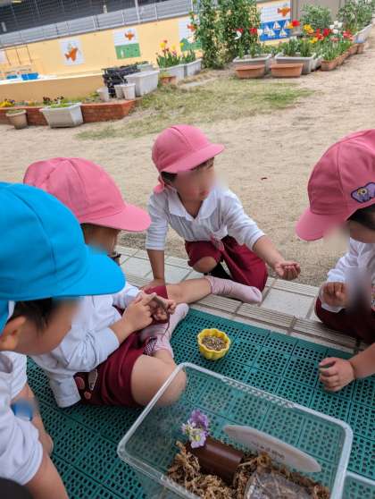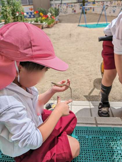 今日は日向が気持ちいい日でした。子どもたちと一緒にカナヘビも日向ぼっこ。よく観察していました。