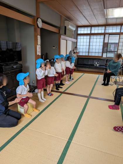 そら組さんが地域の憩いの家に行きました!地域の方に歌を聞いていただいたり、一緒にふれあい遊びをしたりしました。沢山拍手をしていだいたり、優しく手を繋いだりしていただきました。嬉しかったですね♪少しドキドキ、緊張もしていたそら組さんですが、頑張っていました。さすが年長さん!