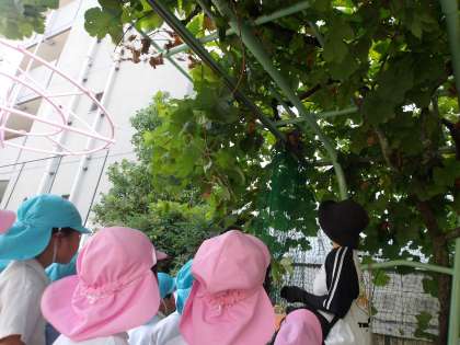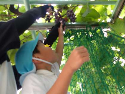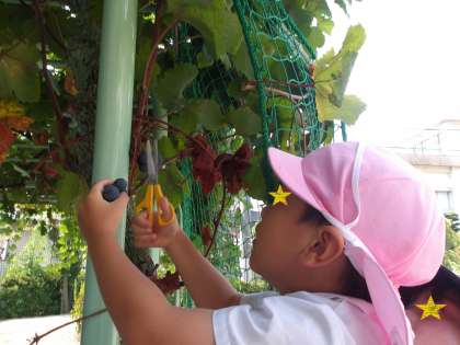 ブドウの収穫 公開日 2025/08/27 更新日 2025/08/27 子どもの姿 園庭のブドウがとてもおいしそうにできてきました。台に登ったり、先生に抱えてもらったりしながらみんなで収穫しました。 たくさん収穫できてうれしかったですね。 いいね(0)