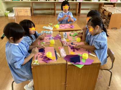 昨日のブドウは、、、 公開日 2025/08/28 更新日 2025/08/28 子どもの姿 昨日収穫を楽しんだブドウを思い出して、絵をかいたり、製作をしたりして遊びました。 そら組さんは箸ペンや細筆を使って、丁寧にかいていました。もも組さんんは画用紙を使って作っていました。おいしそうなブドウができてきましたね! 生活の中で経験したこと、実際に見たり、触れたりした直接体験を色々な活動に生かしています。 いいね(0)