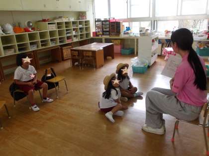 9月1日から、今日まで実習の先生が来てくれていました。子どもたちと毎日たくさん関わって笑顔で遊んでくれていました。最終日前日になる昨日、絵本を読んでくれました。子どもたちの前で読むのは少し緊張もあったでしょうか?子どもたちは嬉しそうにきいていました。