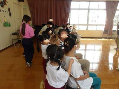 敬老の日の集い 公開日 2025/09/12 更新日 2025/09/12 子どもの姿 今日は敬老の日の集いでした。子どもたちのおじいちゃん、おばあちゃんや地域の方が来てくださいました。 こまやお手玉を見せていただいたり、一緒にエビカニクス音頭を踊ったりして楽しみました。子どもたちも、こまやお手玉など頑張っているところを見ていただき、温かい拍手をしてもらって嬉しそうでした。 最後は手作りのうちわをプレゼントして、楽しいひと時となりました。暑い中、来てくださった皆様ありがとうございました。 いいね(0)