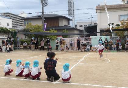 そら組の綱引きは1対1の引き分けでした。力いっぱい綱を引くそら組さんはかっこよかったです。未就園のお友達は車に乗ってパン屋さんに行きました。おうちの方と一緒にみんな参加することができました。リズムではそら組が色々なものにチャレンジをしてきたところを見てもらいました。ここまでの頑張りを見てもらって子どもたちは嬉しそうでした。