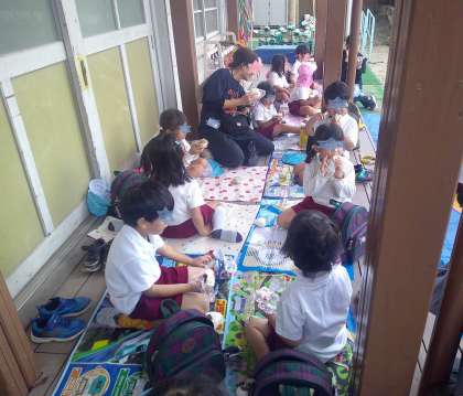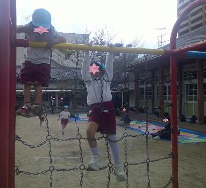 しっかり食べた後は更に仲良くなって遊ぶ姿が見られました。一緒に遊べて、仲良くなれて嬉しかったですね♪大江幼稚園さんありがとうございました。