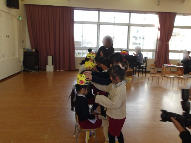 今年度最後の誕生会でした。これで、幼稚園のお友だちみんなお祝いをすることができました。自己紹介も頑張ってしていました。みんなにお祝いしてもらって嬉しかったですね。一つお兄さん、お姉さんになったお友だち、本当におめでとう!