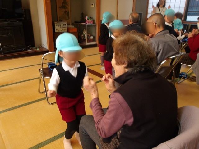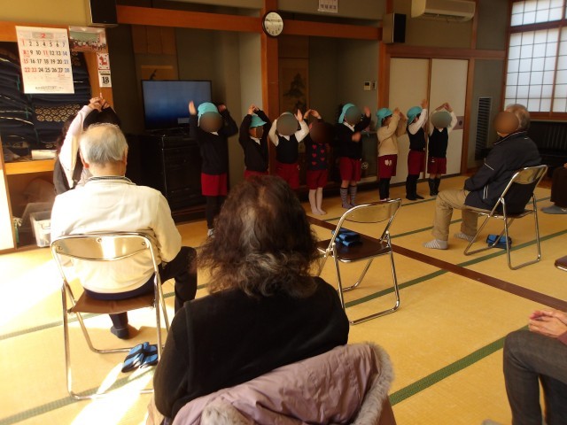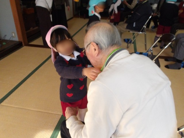 2月18日、いこいの家に行きました。今年度はこの日が最後の訪問です。地域の方にいつも暖かく受け入れてもらい、子ども達もすっかり慣れた様子でした。歌をきいていただいたり、ふれあい遊びをした後は、最後ということでペンダントをプレゼントしました。とても喜んでくださって、嬉しかったですね。最後はギュ―ッとハグをしてお別れしてきました。