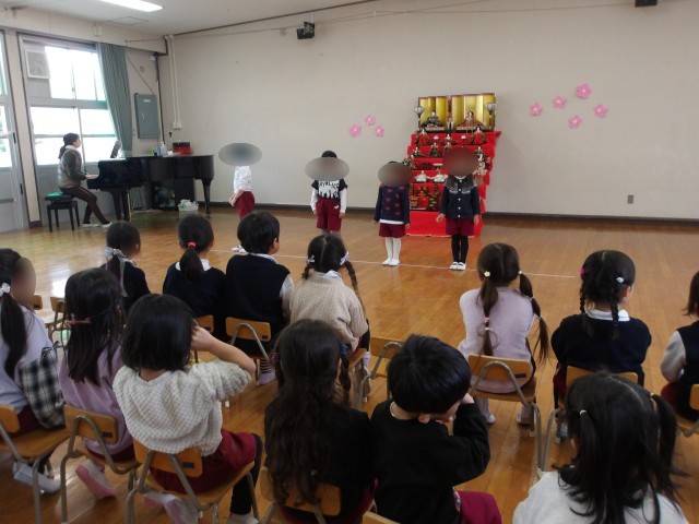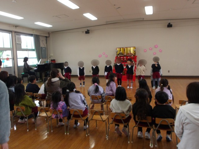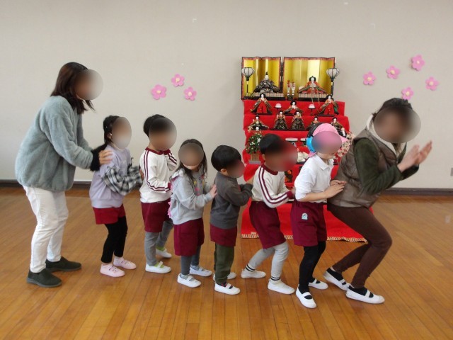 2月19日、長吉第二幼稚園さんと交流をしました。少し距離もありましたがしっかりと歩いていくことができました。思っていたよりも暖かくなり、園庭で楽しく遊ぶことができました。初めは少し緊張気味でしたが一緒にふれあい遊びをしたり、お互い生活発表会の歌を歌って聴いてもらったりしてどんどん打ち解けていきました。お弁当も一緒に食べて楽しい一日を過ごすことができました。