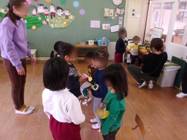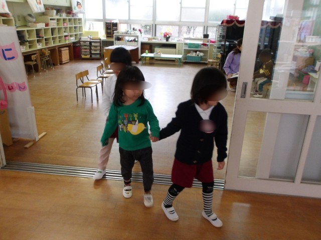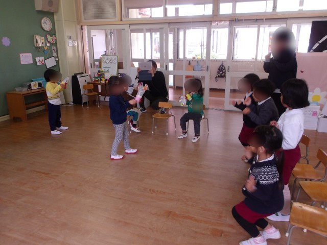 19日は一日入園の日。来年度の新しいお友達が遊びにきてくれました。もも組さんは張り切ってお出迎え!手を引いてトイレに連れて行ってくれたり、一緒にふれあい遊びをしたりして楽しくすごしました。優しく相手のことを考えて動くもも組さんがとても素敵でした。最後に手作りのプレゼントを渡すと、とても喜んでくれて、夢中で遊ぶ新しいお友達の姿を嬉しそうに見るもも組さんがとてもお兄さんお姉さんに見えました。楽しい一日なって嬉しかったですね。