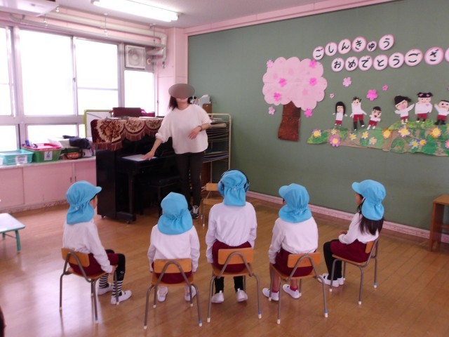始業式を終えた次の日、子どもたちは元気に登園してきました!みんなで「そら組」の帽子をかぶって、気持ちもすっかりそら組さん!にこにこの笑顔がいっぱいでした。明日の入園式で新しいお友達を迎えるために歌や言葉も準備中。明日はよろしくお願いします!
