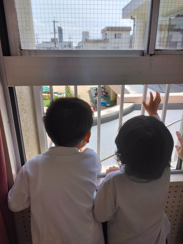 そら組のことが大好きなもも組さん。そら組からも「ヤッホー!」「おーい!」の声が聞かれました。