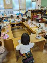 久しぶりに、そら組ともも組で一緒にお弁当を食べました。4月の頃より親しく、仲良く...