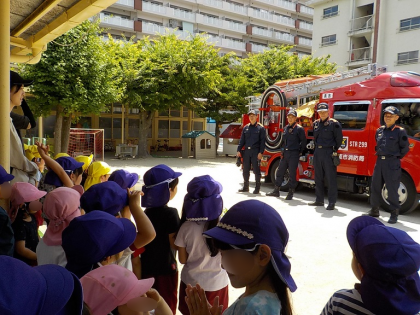 消防士の皆さんが帰るときには「ありがとう!」「お仕事頑張ってください」など、心優しい言葉が子どもたちからたくさん出ていました。いつも地域を見守ってくださっている消防士のみなさん、ありがとうございます!!