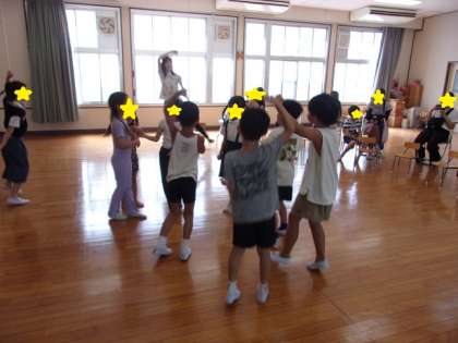 その後は、みんなでジャンボリーミッキーの体操や、ラーメン体操をして大盛り上がり♪そしてそして懐かしの「長吉第二幼稚園の歌」を歌い、楽しいひと時を過ごしました。