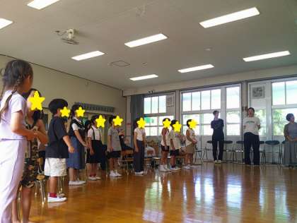 アルバム集会があり、3月に修了した1年生たちが幼稚園に帰ってきてくれました。一人一人、小学校で頑張っていることや小学校の楽しいお話をしてくれ、みんなが学校で楽しく過ごしてる様子が伝わってきました。