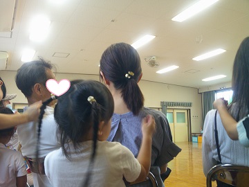 祖父母の方をお招きし、敬老のつどいを行いました。保育室ではパズルやブロックを一緒にしたり、けん玉やコマ回しを教えていただいたり、どの子にも優しく接してくださり子どもたちは安心してかかわっていました。遊戯室では歌やダンス、玉入れ対決を楽しみ、最後には肩たたきやプレゼントで喜んでいただくことができました。子どもたちは一人一人が大切にされていることを感じながら、ふれあいのひとときを楽しんでいました。祖父母の皆様ありがとうございました。