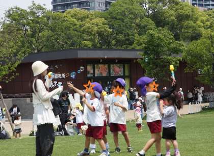 てんしばでお弁当を食べて、友だちやおうちの人とシャボン玉で遊びましたよ。みんなで一緒に行って楽しいひとときになりました。