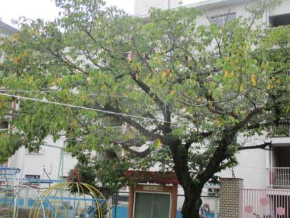 青々と茂っていた桜の木ですが、8月中旬頃から少しずつ色づき始め、葉が散り始めました。桜の落ち葉の色は何とも美しく、時期によって色が変化するところも興味深いです。子どもたちは、毎年、拾っては飾ったり遊びに使ったりして楽しんでいます。新学期に喜ぶ子どもたちの姿を、桜も心待ちにしていることでしょう。