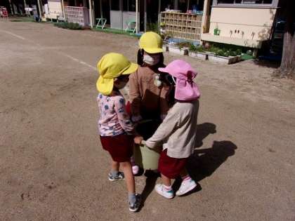 3歳児の鉢を運ぶ時には、4歳児がすすんで手伝い、支えてくれました!ひまわりぐみさんありがとう!