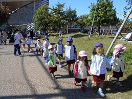 3歳児は電車に乗るのも、こんなにたくさん歩く園外保育も初めてでした。頑張った分、帰りはもうヘトヘト。そこで活躍したのが5歳児です。電車内で席がない時には3歳児に譲り、優しく手を引いて、連れて帰ってきてくれました。頼りになるお兄さんお姉さんでした。ありがとう!