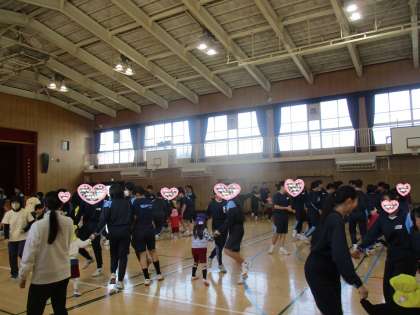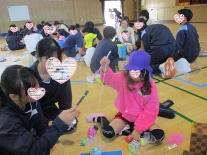 全園児で、長吉中学校に遊びに行きました。3年生の皆さんが家庭科の授業で作ったおもちゃで遊ばせてくれました。それぞれに工夫された、楽しくてワクワクする温かみのあるおもちゃ。初めは少し緊張していた子どもたちも、優しく遊び方を教えてもらい、笑顔で遊んでいました。そして、なんとそのおもちゃは全て幼稚園にプレゼントしてくださいました。幼稚園で大切に使わせていただきます。お兄さんお姉さん、ありがとうございました。