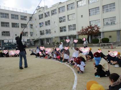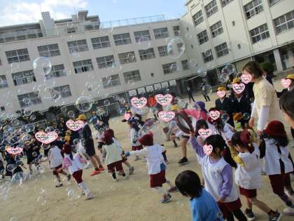 バブルマンのバブルショー! 公開日 2025/11/28 更新日 2025/11/28 幼稚園の様子 午後は、長原小学校さんにお誘いいただき、バブルショーに参加させていただきました。 大きなシャボン玉、無数のシャボン玉、不思議なシャボン玉…どんどん空にシャボン玉が飛んでいく様子はとても感動的で幻想的でした。子どもたちも思わずシャボン玉を追いかけたり触ったり、最後までずっと目を輝かせていました。貴重な経験をさせていただきありがとうございました。 いいね(0)