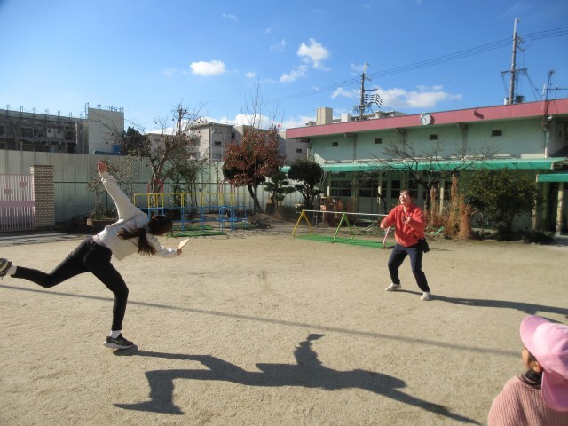 今の時期ならではの羽根つきを先生たちが挑戦!!