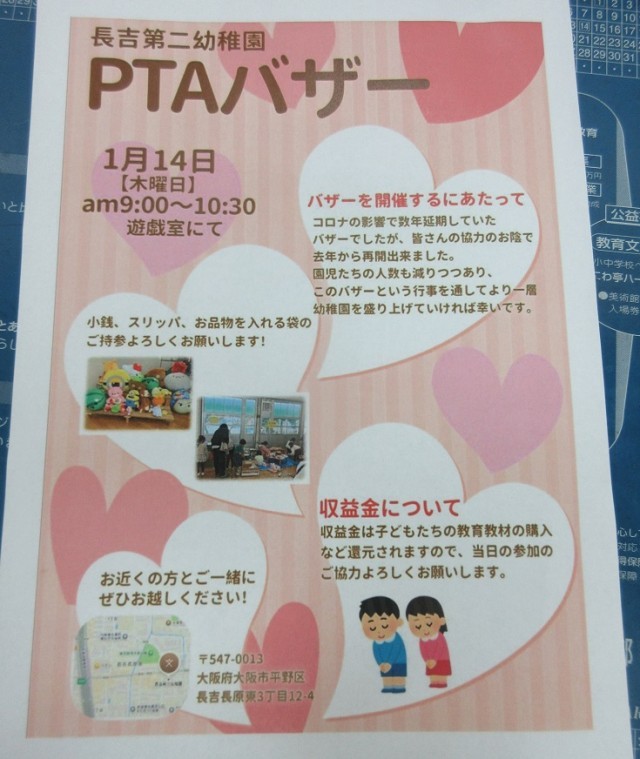 1月14日(木)9:00~10:30  長吉第二幼稚園の遊戯室にて
