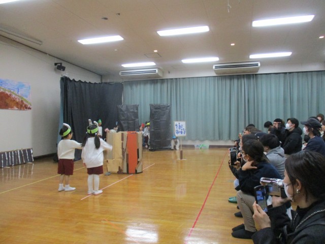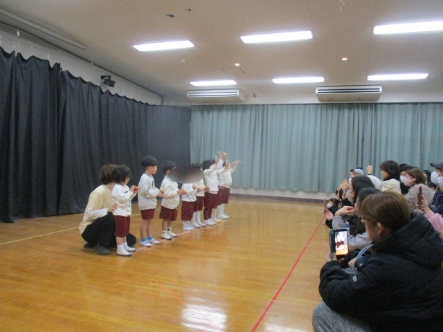今日は待ちに待った生活発表会。たくさんのお客様の前で少しドキドキしていた子どもたちも、プログラムがすすむにつれ『らしさ』を取り戻し、のびのびと表現していました。一年間クラスの先生や友達と培ってきたものを劇遊びや楽器遊び・合奏を通しておうちの方に見ていただき、一緒に感動を分かち合えたことが私たちにとっても大きな喜びです。子どもたちは今日たくさん拍手をもらったことで、また一つ自信になったことと思います。保護者の皆様あたたかい拍手をありがとうございました。