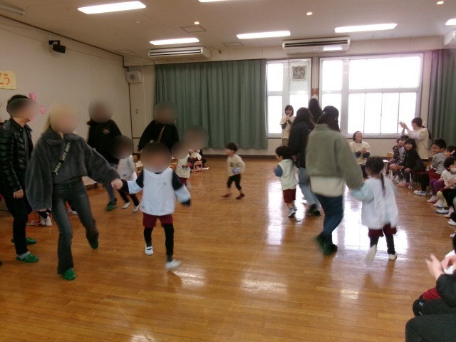 最後は、誕生月なかまでふれあい遊びをしました。自分の誕生月にはみんな元気にスキップで登場しました。恥ずかしながらもみんなニコニコ顔が溢れる楽しい会になりました。