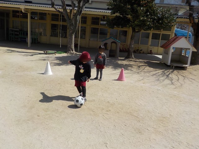 大好きなサッカーは今日はなんと3対3で引き分けでした!「またお弁当食べたら遊ぼう!」と、今日も元気いっぱいの子どもたちです。