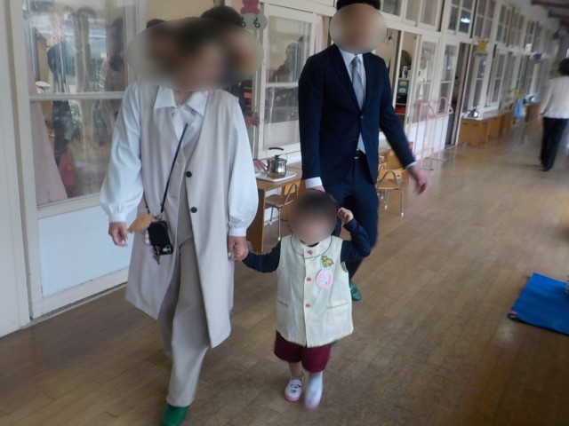 今日は入園式でした。ピカピカのエプロンを身にまとってお家の人とニコニコ顔で登園していました。