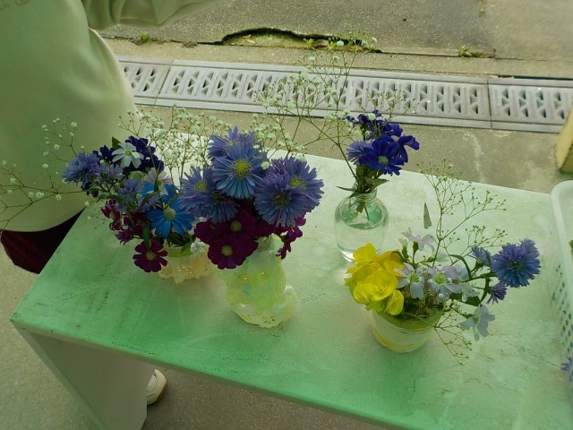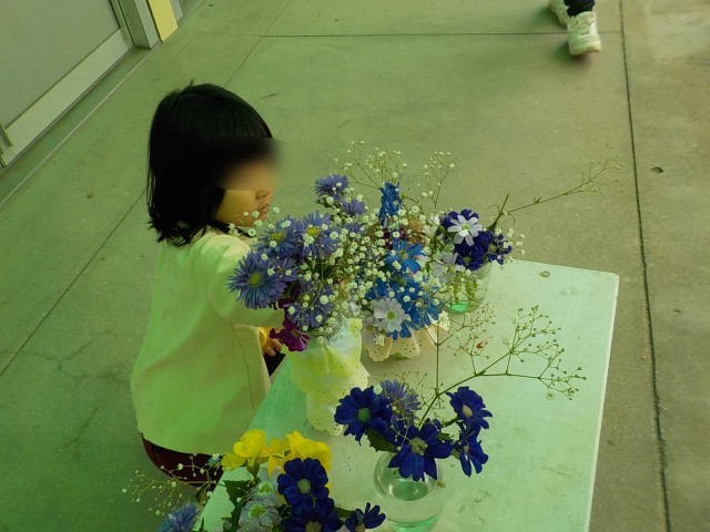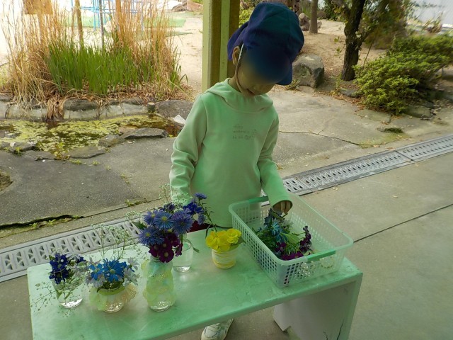 入園式で飾っていたお花を切り花にし、子ども達が花瓶に生けました。