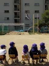 園庭に全園児が集まってこどもの日の集いをしました。 5歳児がこいのぼりを揚げ...