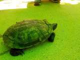 アカミミガメのかめきちは子どもたちの人気者。性格は、のんびり屋でちょっぴり怖が...
