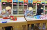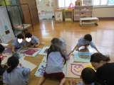 4歳児ひまわり組は、絵の具の感触を楽しみながらのびのび好きな絵をかいていました。...