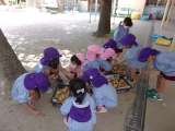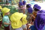 3歳児は、畑へ向かう前に、5歳児の掘ったジャガイモを見せてもらいました。こうす...