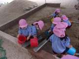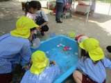 暑い日には、泥や水の感触を味わいながら、どろんこ遊びを楽しんでいます! 3歳...