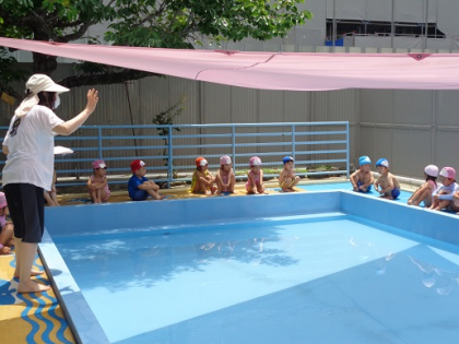 24日は、待ちに待った、すみれ組とひまわり組のプール開きでした!子どもたちは朝...