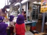明日の七夕遊びにお供えする野菜を買うため、5歳児すみれ組が近所の八百屋さんへ出か...
