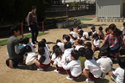 3歳児には、火災の時にはどんなことが起こるのか、どんな風に行動するのか、視覚教材を使いながら丁寧に知らせました。4歳児は、先生の話をしっかりと聞き行動するよう再確認しました。室内で好きな遊びをする中でベルや放送を聞きましたが、さっと集まることができました。5歳児は、避難時の約束「お・は・し・も」を知らせ、命を守るための約束を守って行動できるようにしました。