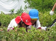 3歳児と5歳児はちょうど時間が一緒になりました。5歳児が手を引き、抜いてもいい草を3歳児に知らせてくれました。「めっちゃ可愛いわ〜」と5歳児。いつもは草を抜くたびに出会う虫に夢中になるのですが、今日はあまり目に入らない様子。3歳児の愛らしさにメロメロになる5歳児でした。