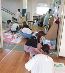 26日(水)に、5歳児の保護者の方が絵本の整理をしてくださいました。破れているところを修正したり、棚をきれいにしたり・・・今日、その絵本棚から子どもたちが読みたい絵本をそれぞれに探し、おうちにもって帰りました。みんな絵本を大切にしながら、たくさんのお話にふれてくださいね。