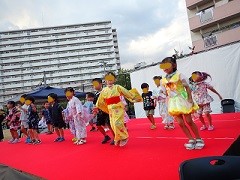7月28日(日)に、瓜破北地域の夏祭りに参加し、体操やダンスを披露しました。地域の皆様の温かい眼差しと大きな拍手がとても嬉しかったです。お土産もいただき、子どもたちは大喜びでした。