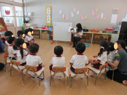 あか組では「ガラガラうがい」についての保健指導を行いました。