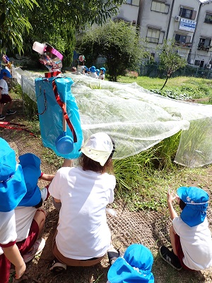 この出来事を保育が終わり職員で話していると4歳児の担任が「4歳児の子ども達は鳥にも食べさせてあげたいと言っていましたよ」と。なるほど・・確かにお腹を空かせている鳥に食べさせてあげたいという気持ちも生き物を思いやる優しい気持ちですよね。このことを明日5歳児に伝えることにしました。職員同士で決めるのではなく子ども達に任せて田んぼのお米をどうしていくのか一緒に考えていきたいと思います。さてどうなるのでしょうか??次回の更新を楽しみにしていてください☆