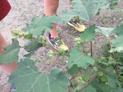 本園のビオランドに、絶滅危惧種であるオナモミが今年もたくさん芽を出しました。「ひっつきむし」と聞くと、分かる方も多いのではないでしょうか。今花が咲き(丸くて可愛いですよ)、少しずつ実ができ始めています。