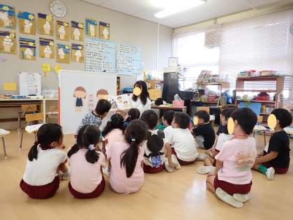 身体はどの部分も大切ですが、その中でも特に大切な「プライベートパーツ」という部分があることを伝えました。また、「だいじ だいじ どーこだ」の読み聞かせを行った後、プライベートパーツは人の命に直接かかわる大切な場所であること、他人が勝手に見たり触ったりしてはいけないことをお話ししました。