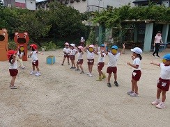 今日は運動会の各クラスの遊びを園庭に用意してみました。すると「あおぐみさん、リレーやりたい!」「あかぐみさんのダンス教えて!」「ももぐみさんの玉入れに挑戦したい!」とやってみたいことがいっぱい!異年齢の友達と一緒にいろいろな運動遊びを楽しみました。明日からもまだまだ遊びは続きます。刺激を受け合い、友達と一緒に体を動かす楽しさを存分に味わえるようにしたいと思っています。