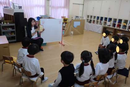 冬になると感染症が流行しやすくなったり、手洗いうがいがおろそかになってきたりします。あか組では冬が本格的に始まる前に風邪予防について保健指導をしました。