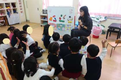 その後、お弁当の時間には「おにぎりは黄色列車!」「ウインナーは何色列車?」など、栄養を考えながら食べている姿や、指導の中で出てこなかった食べ物にも興味津々の姿がありました。いろいろな食べ物を食べて元気に過ごしましょうね。